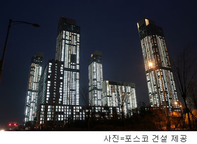 포스코건설은 20일 2005년 5월 착공이후 45개월만에 완공한 ‘더샾 퍼스트월드’를 공개하고, 야간점등식을 열었다.