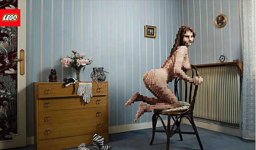 프랑스 사진작가 쟝-입스 르므와뉴는 레고를 이용해 여성의 나체를 실물 크기로 제작해 작품들을 인터넷 사이트에 올렸다. 가까이에서 보면 울퉁불퉁한 바위와 같은 형상처럼 보일 수 있지만 적절하게 먼 거리에서 바라보면 상당히 세밀하게 여성의 모습을 묘사했다.