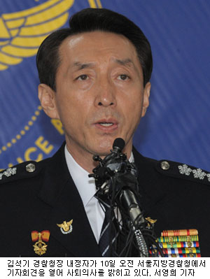 김 내정자는 이날 서울 내자동 서울경찰청 15층 강당에서 기자회견을 갖고 “오늘 용산 사고의 도의적 책임을 지고 경찰청장 내정와 서울경찰청장 직에서 사퇴하기로 결심했다”며 이같이 밝혔다.