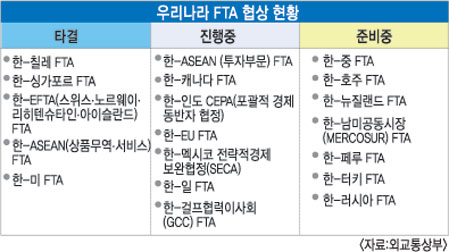 FTA 체결국과의 교역비중이 점차 늘어나고 있다는 점도 한가지 이유다. 명진호 국제무역연구원 연구원은 "FTA 체결에 적극적인 칠레와 싱가포르의 경우 전체 교역에서 FTA 체결국과의 교역 비중이 2009년 각각 86.3%와 72.8%에 달할 것으로 예상된다"며 개별국간 FTA 체결을 적극 활용해야 한다고 강조했다.