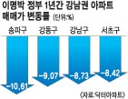 부동산정보업체 닥터아파트는 16일 현 정부 출범 직후인 지난해 2월29일부터 현재까지 서울 아파트값 변동률을 조사한 결과 강남권 4개구(강남·서초·송파·강동구)는 평균 9.21% 떨어진 것으로 집계됐다고 밝혔다.