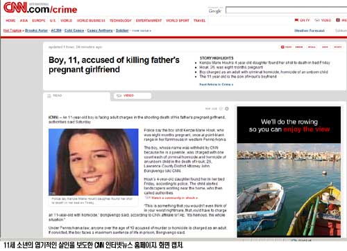 [쿠키 지구촌] 미국에서 11세 소년이 아버지의 임신한 여자친구를 총으로 쏘아 죽이는 사건이 발생해 충격을 주고 있다. 이소년은 살인혐의가 인정될 경우 평생을 감방에서 살아야 될 위기에 처했다.