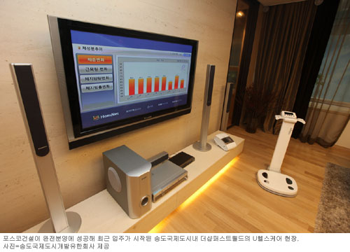 ◇인천 송도국제도시는 도시 전체가 유비쿼터스=얼마 전 송도국제도시 주상복합아파트 더샾 퍼스트월드에 입주한 주부 A씨는 새집보다 더 맘에 드는 게 있다. 자라나는 아이들과 가족들의 건강을 위해 정기적으로 병원을 예약하고 건강검진을 받으러 다녔던 불편함이 이젠 사라진 것.