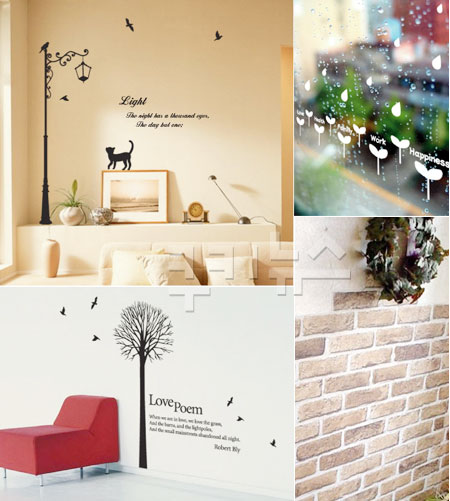 유명한 글귀나 시구 등이 적힌 ‘레터링 스티커’와 유리창에 붙이는 창문용 스티커 등은 아기자기한 느낌을 연출 할 수 있어 잘 팔린다. 작은 액자를 연상케하는 테마 스티커도 밋밋한 벽면을 꾸미기에 좋다.