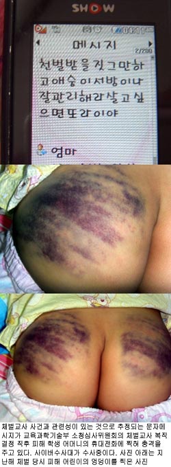 이와 관련, 모 방송을 통해 이 사건을 접하게 된 주부들은 “여자 아이를 때리기 이틀 전에는 받아쓰기를 흐리게 썼다는 이유로 수술 병력까지 있는 아이를 하루 종일 때린 체벌고사에 대해 해당 학부모의 의견도 묻지 않은 상태에서 교육부가 면죄부를 준 것은 문제가 있다”고 지적했다.
