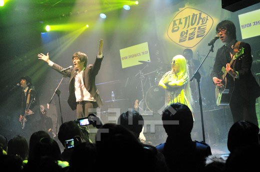 지난해 10월 3곡을 담은 미니앨범 ‘싸구려 커피’을 내고 말하듯 노래하는 독특한 창법 덕에 인터넷에서 일약 스타덤에 오른 장기하(27). 그가 약 4개월만에 세 명의 ‘얼굴들’과 함께 첫 정규 앨범을 내고 27일 가진 발매 기념 콘서트에서는 ‘꽃보다 (장)기하’란 구호가 곳곳에서 터져나왔다.