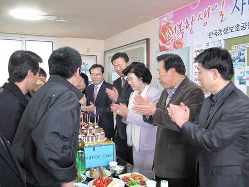 이날 행사에는 또 부산지부 운영위원회 김선진 부위원장은 합동생일자 15명에게 속옷 ?트를, 직업훈련후원회(회장 박춘식)에서는 대형 생일케?과 빵을 지원했다.