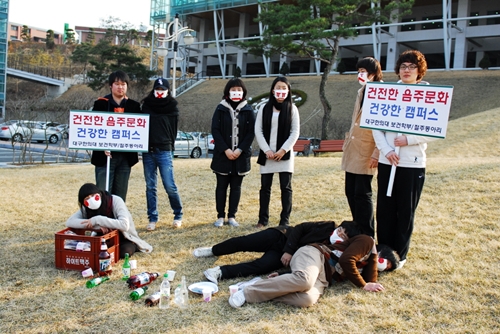 2007년 6월 결성된 대구한의대 절주동아리는 현재 26명의 회원들이 활동중이며 이상건(25··보건관리학과 4년) 회장은 지난달 24일 전재희 보건복지가족부 장관의 초청으로 열린 ‘음주문화 개선을 위한 간담회’에 참석하기도 했다.