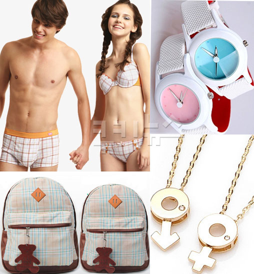 과거 연인들의 주얼리로 커플링이 대세였지만 최근에는 피어싱과 목걸이 등을 커플로 착용하는 경우도 많다. 연인의 이니셜이 새겨진 목걸이가 가장 무난하다. 귀고리를 즐기는 남성이라면 심플한 큐빅이 박힌 귀고리나 피어싱 등으로 커플링 대신해도 좋다. 커플 시계도 트렌드가 바뀌면서 크기나 색상을 달리 했던 과거와는 달리 시계 내부의 액정이나 디테일에 변화를 준 제품이 인기다.