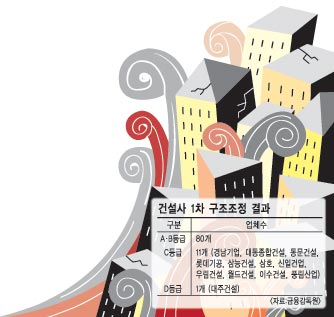 워크아웃 대상인 C등급 건설사들은 금융권 분류작업이 명확한 근거 없이 진행됐다며 불만이다. 객관적 자료 외 평가항목이 많아 금융권 입맛에 따른 임의적 분류가 많았다는 것. C등급 건설사 관계자는 “우리보다 재무제표가 엉망인 회사를 B등급으로 해놓은 것으로 볼 수밖에 없다”며 “1차 구조조정 작업에서 재무 항목보다 비재무 항목의 비중이 높았던 문제점이 그대로 드러나고 있다”고 지적했다.