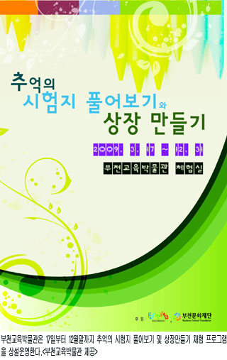 [쿠키 사회] 부천교육박물관(www.bcmuseum.or.kr)은 오는 17일부터 12월 31일까지 ‘추억의 시험지 풀어보기와 상장 만들기’ 상설체험프로그램을 진행한다고 15일 밝혔다.