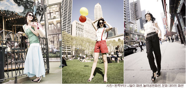 겨우내 움추렸던 몸과 마음을 산뜻하게 전환하기에 놀이공원 만한 곳이 없다. 놀이기구를 즐기며 활동성을 강조하기 위해서는 발랄한 이미지를 연출하되 활동이 편한 ‘캐주얼 룩’이 적합하다.
