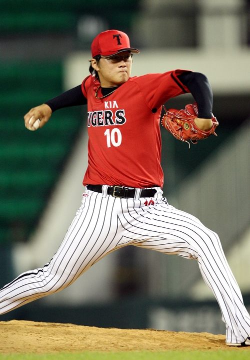 한기주는 4일 두산과의 개막전에 팀의 세 번째 투수로 등판해 네 타자를 맞아 안타 1개를 허용했지만, 탈삼진 1개를 곁들여 1이닝을 무실점으로 막아냈다. 사진제공=KIA 타이거즈 국민일보 쿠키뉴스 조상운 기자