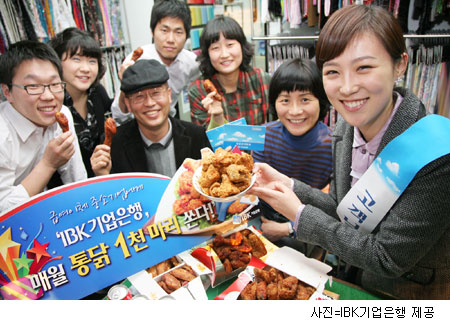 [쿠키 경제] IBK기업은행은 급여이체 중소기업 임직원을 대상으로 매달 1000마리 통닭을 제공하는 ‘중소기업 근로자 기살리기 이벤트’를 진행한다고 7일 밝혔다.