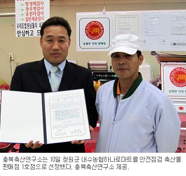 [쿠키 사회] 충청북도축산위생연구소는 내수농협하나로마트가 안전검증 축산물 판매점 1호로 선정되었다고 10일 밝혔다.