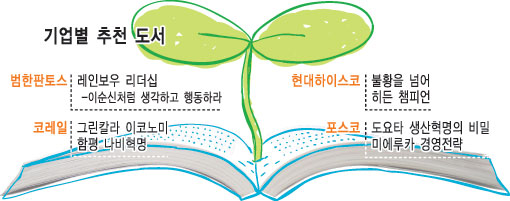 임원들에게 매주 책을 한 권씩 선물하는 정준양 포스코 회장은 주간 회의 때마다 책에 대한 토론을 벌인다. 정 회장이 취임 후 처음 선물한 책은 ‘도요타 생산혁명의 비밀’. 도요타 공정 및 관리 혁신에 관한 것으로, 포스코는 올 초 도요타에 강판 납품계약을 체결에 성공한 바 있다. 포스코는 또 단행본 3만권, 정기간행물 6만권을 비치한 ‘디지털 라이브러리’를 통해 사내 독서경영을 이끌고 있다. 1인당 10권까지 빌릴 수 있고 사내 인터넷망으로 신청하면 다음날 사무실로 배달된다.