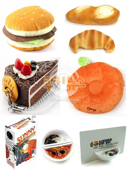 디지털 제품 외에도 음식을 닮은 다른 사무실용품도 다양하게 출시돼 있다. 짜장면과 짬뽕을 반반씩 담은 ‘짬짜면’을 그대로 흉내낸 명함 홀더는 앙증맞은 책상위 인테리어 소품으로도 손색이 없다. 소라빵과 머핀, 도넛 등 제과점에서 볼 법한 ‘빵 마우스패드’도 인기가 좋다. 국민일보 쿠키뉴스 신은정 기자