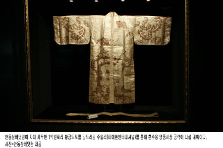 [쿠키 사회] 안동삼베닷컴(대표 김명섭)이 제작한 황금도포(黃金道袍)가 앙드레김 주얼리(파에톤인터내셔널)와 손잡고 혼수용 명품시장 공략에 나섰다.