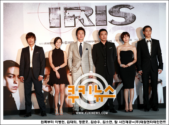 "[쿠키 연예] 블록버스터 첩보 드라마가 몰려온다. 200억이 투입된 액션 대작 ‘아이리스’(제작 ㈜태원엔터테인먼트)다. 출연진부터 화려하다. 이병헌을 비롯해 정준호, 김태희, 김승우, 김소연, 빅뱅의 탑(T.O.P)까지 국내 톱스타 6명이 출연한다. 드라마 ‘아이리스’는 제2차 한국 전쟁 발발을 막기 위해 고군분투하는 첩보 요원들의 이야기를 다룬다.