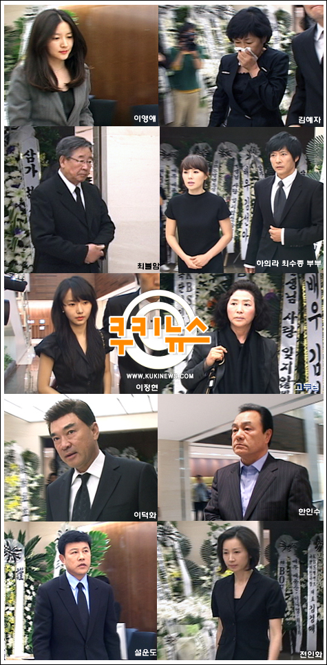25일까지 배우 최은희 김애경 이재룡 유호정 전원주 이영애 변희봉 지진희 장미희 김주혁 김지수 문근영 주현 강부자 백윤식 차승원 김선아 전인화 박근형 최수종 하희라 손현주 양택조 김영옥 최불암 윤미라 봉태규 이덕화 김혜자 김용림 견미리 김수미 박철 고두심 안재욱 차태현 윤문식 등 수많은 동료 선·후배 연기자들이 빈소를 다녀갔다.