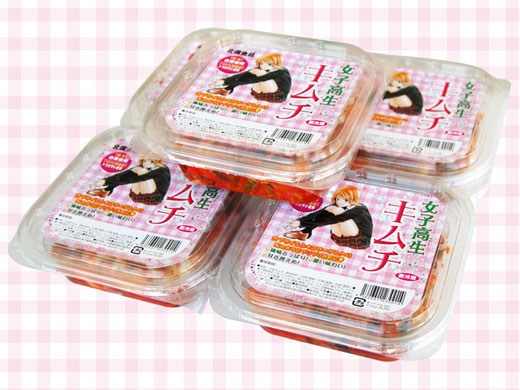 일본 히로시마현에 위치한 호쿠비 식품은 같은 지역 출신 인기 만화가 세오 코우지와 손잡고 제품 패키지에 미소녀 일러스트를 그려넣은 여고생 김치(High school girl-Kimchi)를 제작해 최근 판매를 시작했다.