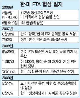 [쿠키 경제] 이명박 대통령의 미국 방문에서 가장 중요한 목표 중 하나는 한·미 FTA(자유무역협정) 비준의 초석을 다지는 것이다. 이 대통령은 15일(현지시간) 미국 행정부의 실세 장관들을 잇따라 만나 한·미 FTA 조기 비준에 대해 공감대를 이끌어냈다.