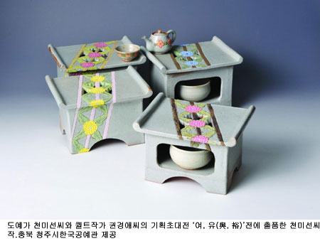 [쿠키 사회] 충북 청주시한국공예관은 도예가 천미선씨와 퀼트작가 권경애씨의 기획초대전 ‘여, 유(與, 裕)’전을 24일부터 내달 5일까지 개최한다.