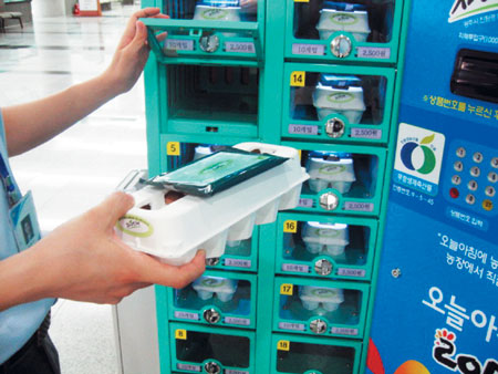 광주지역 6개 산란계농가로 구성된 다한영농조합법인은 지난해 11월1일 광주시 경안동 해태그린아파트 단지 내 관리사무소 옆에 달걀자판기 한 대를 시범설치했다.