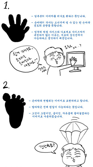 강풀은 앞으로 손바닥과 발바닥 이미지를 통해 펌질 가능을 알리겠다고 밝혔다. 이는 만화에 ‘손바닥’ 이미지가 그려져 있을 경우 만화의 일부분을 상식선에서 퍼가도 된다는 의미다. 손바닥 하나 정도의 분량을 퍼갈 수 있다는 뜻이다.