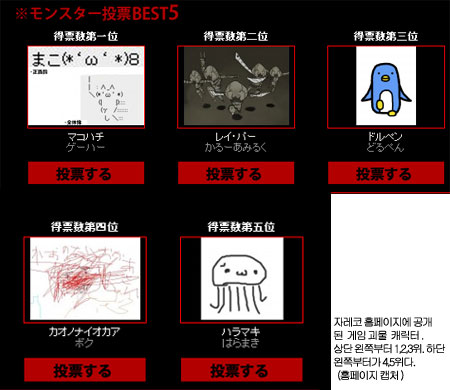그러나 네티즌들의 장난성 투표가 이어지면서 게임 캐릭터라고 부르기에 민망한 그림들만 순위에 올랐다.