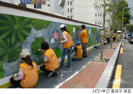 [쿠키 사회] 전통과 문화가 어우러진 동래지역의 벽면이 희망근로사업 등으로 아름다운 ‘그림 액자’로 변신한다.