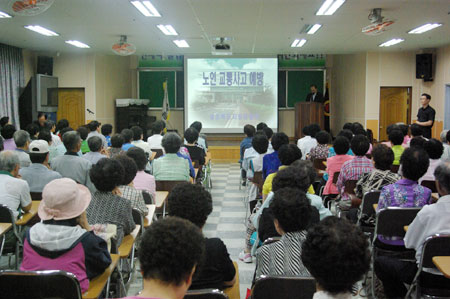 충북경찰청은 노인교통사고 예방 없이는 교통사고사망률을 감소 시킬 수 없다고 판단해 지난 5월부터 전국 처음으로 도내 경로당 3592개소를 상대로 노인교통사고 예방홍보 및 교육을 실시하고 있다. 이와 함께 노인상대 보이스피싱 피해사례 예방교육도 병행 실시하고 있다. 이 결과 노인교통사고사망자 수가 5월초부터 지난 20일까지 전년 같은기간보다 6.4%가 줄어든 것으로 나타났다.
