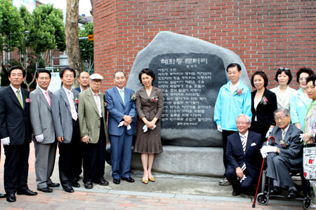 [쿠키 문화]“아침이 오면/혜화동 로터리는 꽃처럼 피어난다”로 시작되는 김영진 시인(대한기독교문인회장)의 ‘혜화동 로터리’ 시비(詩碑) 제막식이 지난 8일 서울 혜화동 우리 은행 지점 앞에서 열렸다.