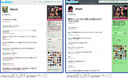 도쿄와 나가노에 각각 떨어져 살고 있었던 chank와 chanm은 트위터에 비슷한 관심사의 글을 쓰고 거기에 답변을 달면서 가까워졌다. chanm은 2007년 4월부터 트위터를 시작했고 chank는 지난해 2월 트위터에 가입했다. 애니메이션과 게임을 좋아하는 등 관심사가 비슷해 서로를 ‘친구’로 연결한 것은 지난해 5월.
