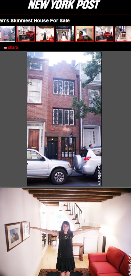 뉴욕 맨하탄 배드포드 75번지와 77번지 사이에 위치한 3층짜리 붉은색 벽돌집은 뉴욕에서 가장 좁은 집으로 유명하다. 1873년 지어진 이 주택은 폭이 9.5피트(2.9m), 높이도 42피트(12.8m)에 불과하다.