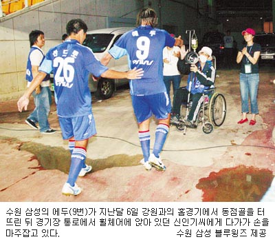 신씨는 수원블루윙즈축구단의 명예 사진기자 그룹인 ‘블루포토’의 창단 멤버. 10여 년 동안 국내·외를 오가며 축구팀의 역사를 앵글에 담아왔던 그는 위암 말기 판정을 받은 후 지난달 6일 마지막으로 경기장에 나가 셔터를 눌렀다.