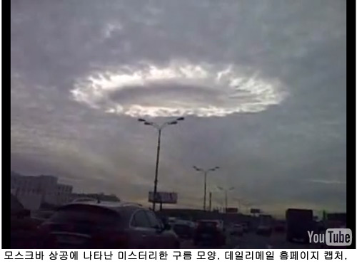 러시아의 수도 모스크바 상공에 빛이 나는 원 형태의 구름이 나타나 시민들을 깜짝 놀라게 했다. 1996년 개봉된 영화 ‘인디펜던스 데이’의 외계인 침공 장면을 연상시키는 이 구름은 지난 8일 모스크바 남서부에 등장했으며 한 모스크바 시민에 의해 촬영됐고 영국 일간 데일리메일이 11일 보도했다.