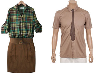 올 가을에는 위 아래에 서로 다른 소재와 컬러를 이용해 투피스를 입은 듯한 효과를 주는 디자인의 원피스가 큰 인기를 끌고 있다. 실제로 온라인쇼핑몰 디앤샵의 9월 원피스 판매량 1위를 차지한 제품 역시 체크패턴의 상의와 코튼 혼방의 스커트를 따로 입은 것처럼 디자인된 페이크 제품이었다.