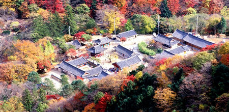 속리산은 26일이 단풍 절정기다. 이 기간에는 속리산 입구 오리숲과 법주사 부근의 단풍이 절정을 이룬다. 단풍 산행코스로 법주사, 세심정을 경유해 다시 법주사로 돌아오는 능선 코스(5-6시간)와 3시간 반 가량이 소요되는 세심정 코스가 유명하다. 세심정 코스 중에서도 매표소에서 법주사 입구인 금강문까지 약 1km 구간의 울창한 오리숲의 단풍이 압권이다. 국민일보 쿠키뉴스 신은정 기자, 도움말=옥션숙박의 김정순 과장