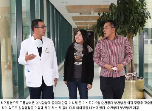 9일 순천향대부천병원에 따르면 '카롤리병'으로 불리는 희귀질환으로 병세가 악화된 보람(16·부천 원미구)양이 아버지 이병홍(43·무직)씨의 간을 이식받아 살아났다.