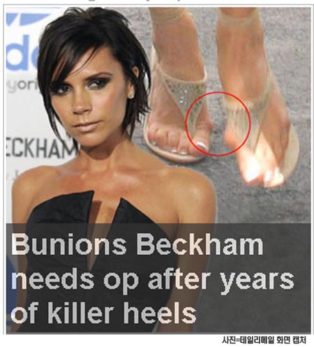 [쿠키 지구촌] 축구스타 데이비드 베컴의 아내 빅토리아 베컴이 심각한 킬힐 후유증을 겪고 있다고 영국 일간지 데일리메일이 27일 보도했다.