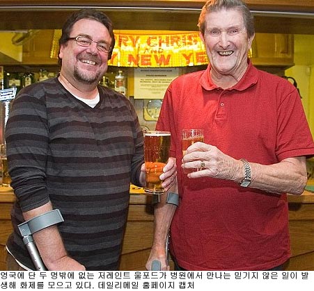 [쿠키 톡톡] 전국에 단 두 명밖에 없는 같은 이름의 사나이가 우연히 만날 확률은 얼마나 될까. 영국 전역에 단 두 명밖에 없는 저레인트 울포드(Geraint Woolford)라는 이름을 가진 남성 두 명이 북웨일즈의 애버젤병원에 같이 입원해 인근 병상에 누워 있다가 만나 화제를 모으고 있다.