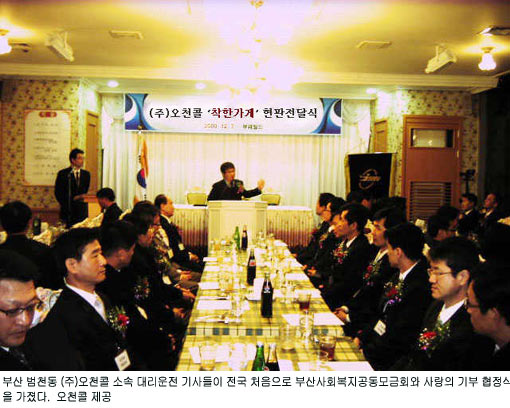 이날 협약식에서 대리운전 기사들은 매월 수익금의 1%를 사회복지공동모금회에 기탁, 어려운 이웃을 돕기로 결의했다. 이들이 기탁하는 성금은 매월 250만~300만원으로 연간 3500여만원에 달할 전망이다.