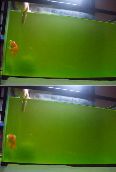 22일 게재된 동영상은 초록빛이 감도는 수조에 주황색 금붕어 한 마리가 들어가 있는 모습으로 시작된다.