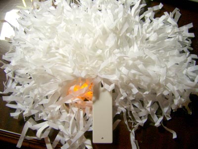 마지막으로 종이 술. 야구 중계를 봤다면 눈에 익숙할 만한, 롯데 팬들이 단체로 흔드는 신문지 응원도구와 꼭같이 생겼다. 크기가 다소 작고, 흰색 종이로만 만들어졌다는 게 달랐다. 하지만 차이는 더 있었다. 자세히 살펴보니 손잡이 부분이 플라스틱으로 되어 있고, 버튼 하나가 달려 있다. 이 버튼을 위로 올리면 종이 술 사이에 숨겨져 있는 3개의 꼬마전구가 점멸등으로 변한다. 크리스마스에 트리에 다는 꼬마전구 그것과 마찬가지다.