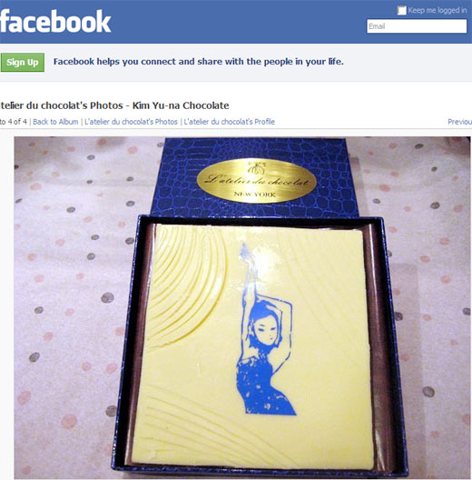 미주 한국일보와 미국에 거주하는 다수의 네티즌에 따르면 맨해튼 다운타운에 위치한 고급 초콜릿 전문점에서 최근 ‘김연아 초콜릿’을 선보였다.