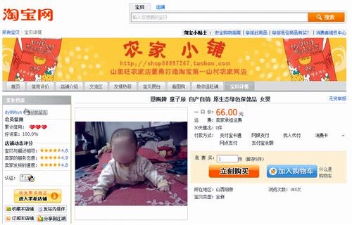 보도에 따르면 쇼핑몰 ‘타오바오’에서 아이의 오줌을 건강음료로 소개하고 판매하는 개인이나 업체는 15곳에 이른다.