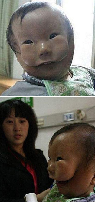 중국 호남성 장사시의 해방군 163병원은 생후 14개월된 강강 양의 얼굴이 마치 가면을 쓴 것 같은 기형인 것을 보고 깜짝 놀랐다고 중국 묘보가 24일 보도했다. 병원에 따르면 강 양의 얼굴은 선천성 전면부 분열로, 단순히 입술이 분열된 게 아니라 안면부 뼈 전체가 완전히 나뉘어져 있는 게 특징이다.