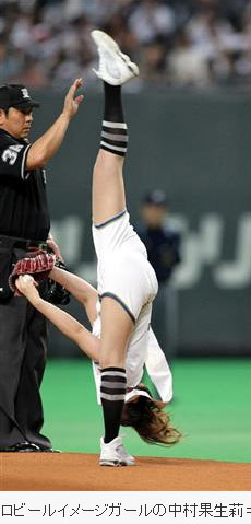 일본 다수 블로거에 따르면 12일 삿포로 돔 구장에서 열린 니혼햄 파이터스와 주니치 드래건스 경기에서 나카무라 카오리(24)는 시구자로 나섰다.