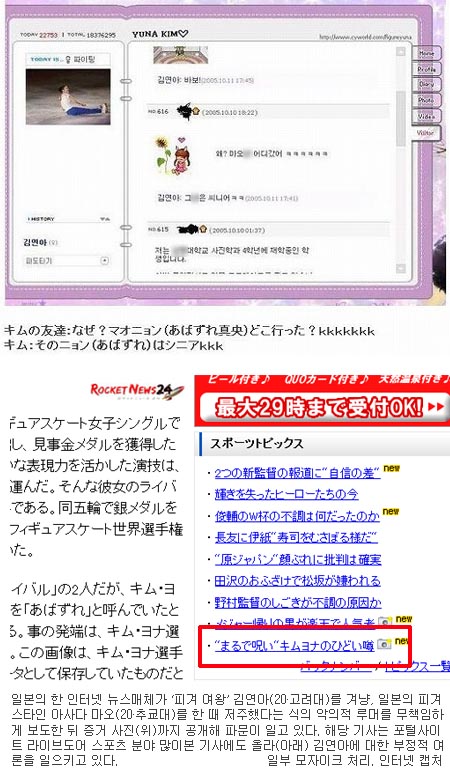 로켓뉴스24는 기사에서 ‘두 사람은 자타가 인정하는 라이벌이지만, 김 선수가 아사다 선수를 “∼X”이라고 불렀다는 소문이 퍼지고 있다’고 적은 뒤 증거로 인터넷에 나도는 사진을 첨부했다.
